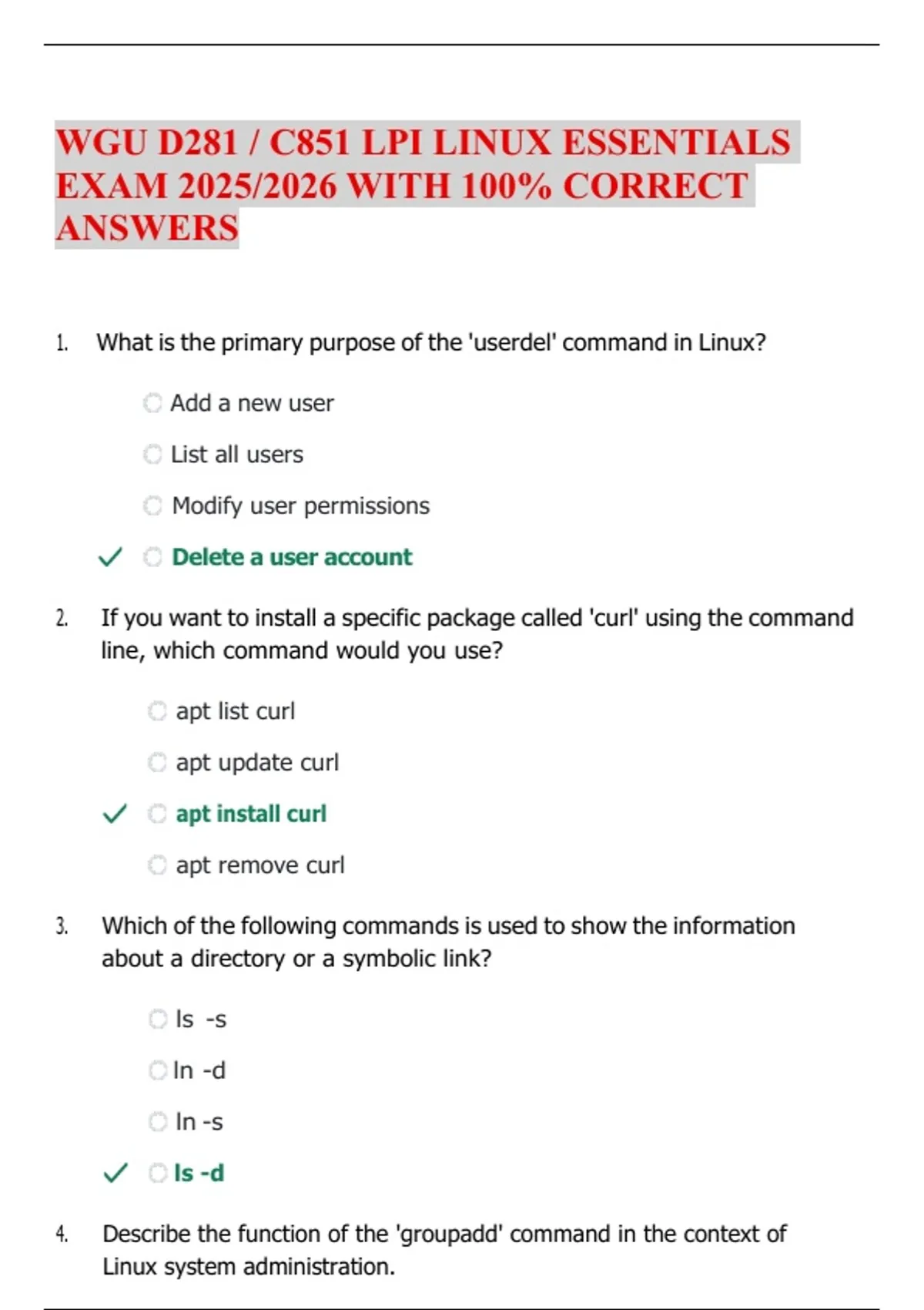 WGU D281 / C851 LPI LINUX ESSENTIALS