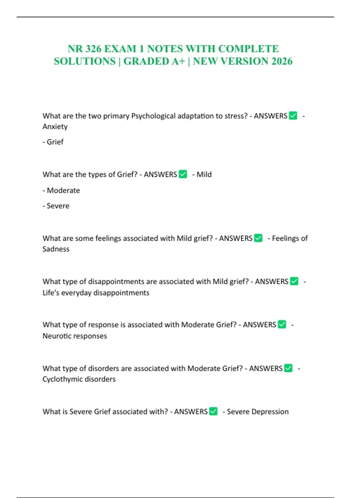 What is Severe Grief associated with? - ANSWERS - Severe Depression