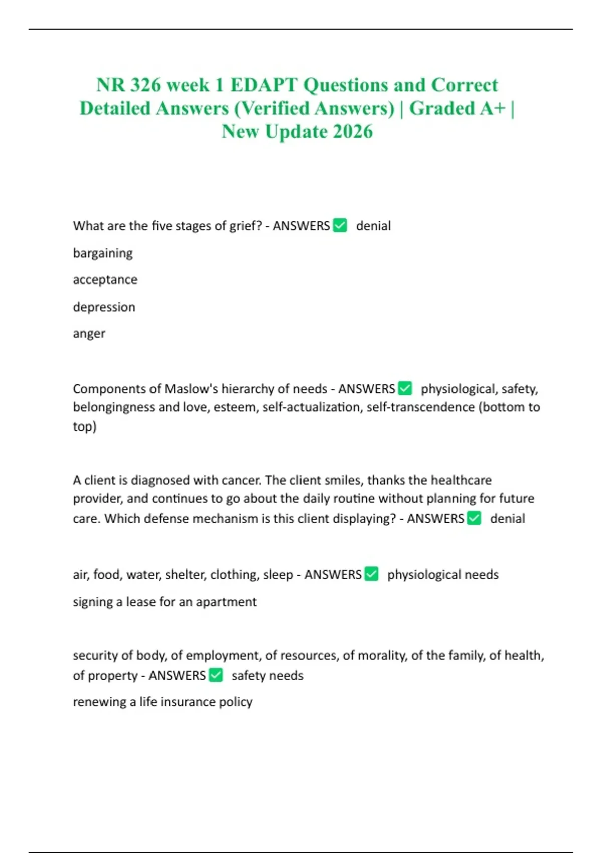 NR 326 week 1 EDAPT Questions and Correct Detailed Answers (Verified Answers) | Graded A+ | New Update 2026
