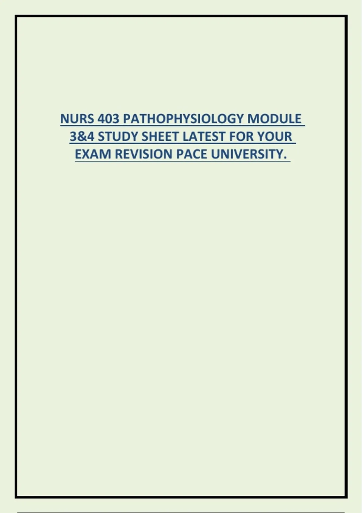 NURS 403 PATHOPHYSIOLOGY MODULE 3&4 STUDY SHEET LATEST FOR YOUR EXAM REVISION PACE UNIVERSITY.
