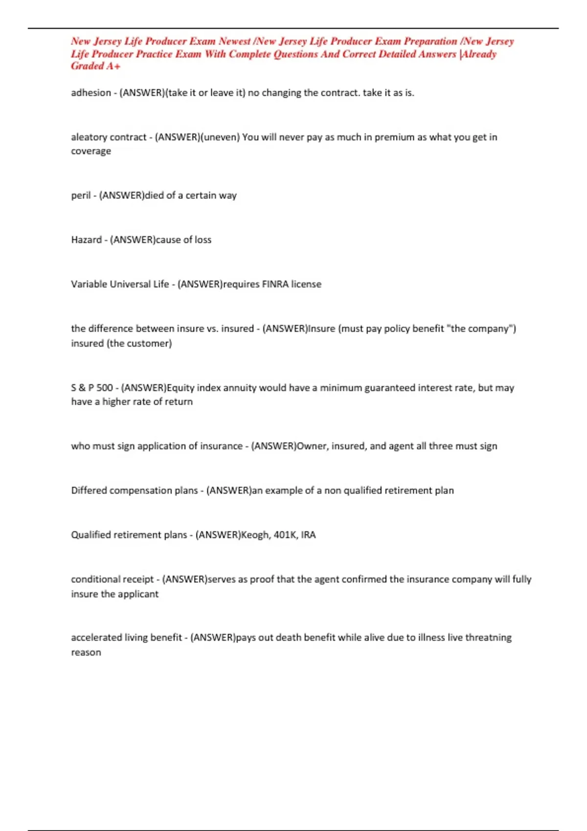 , New Jersey Life Producer Exam Newest /New Jersey Life Producer Exam Preparation /New Jersey
