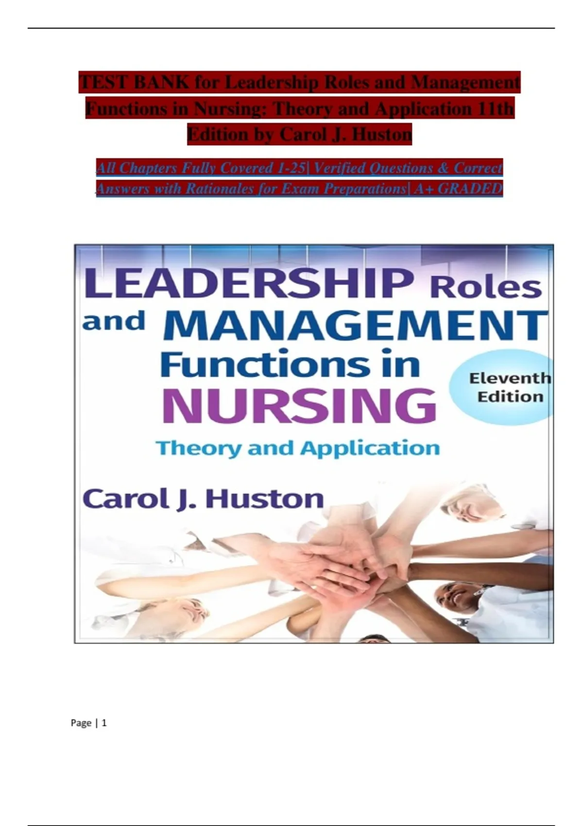 TEST BANK Leadership Roles and Management Functions in Nursing: Theory and Application 11th Ed by Carol J. Huston Chapter 1-25