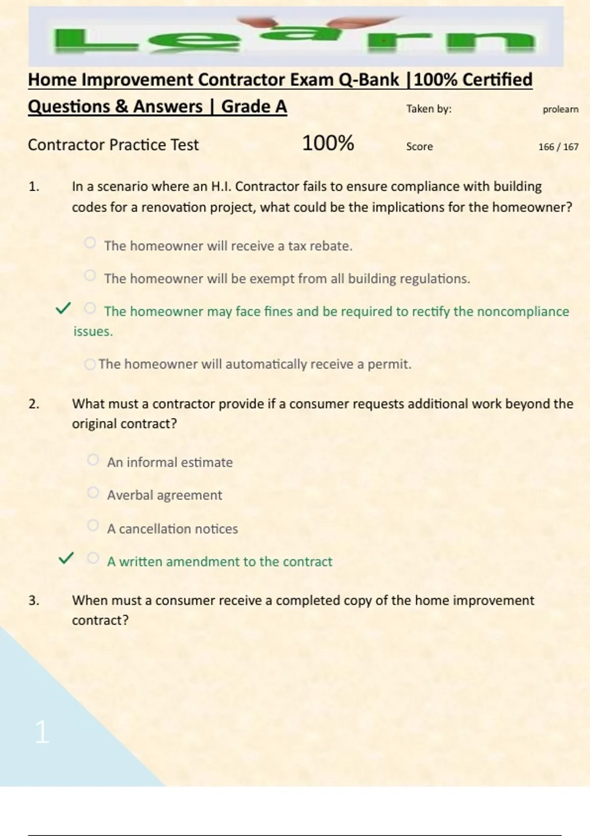Questions & Answers | Grade A Taken by: prolearn
