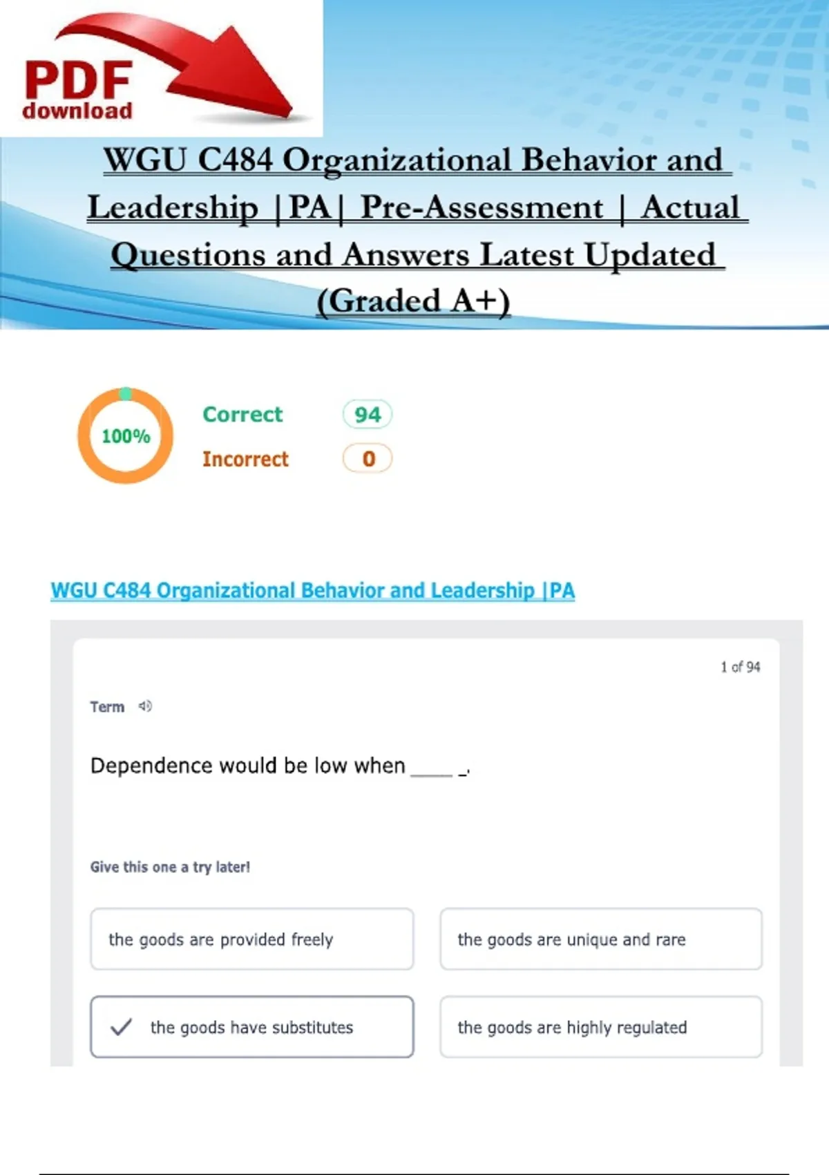 WGU C484 Organizational Behavior and Leadership |PA