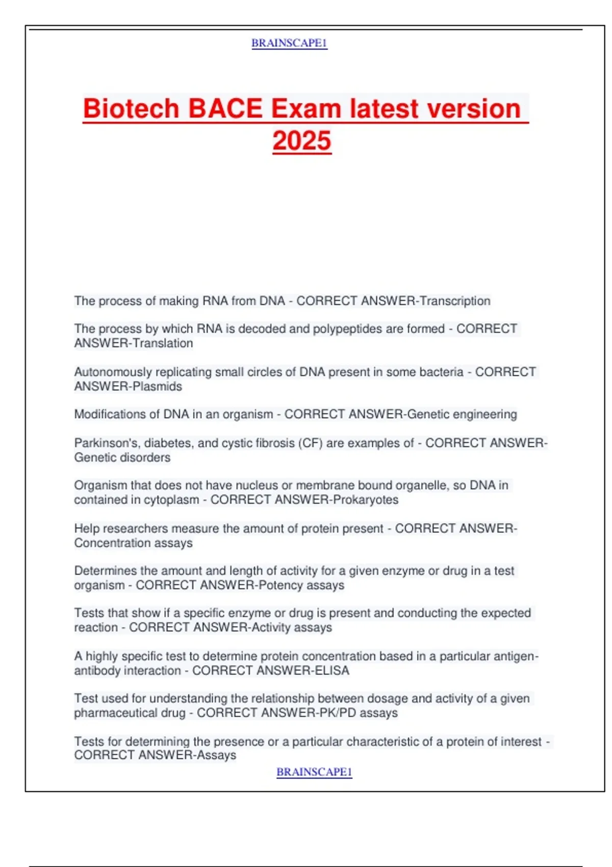 Biotech BACE Exam latest version