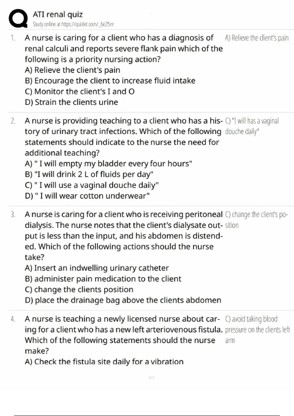 ATI Renal Quiz / 2025 New Version / Score 100% Nursing Practice Questions & Study Guide