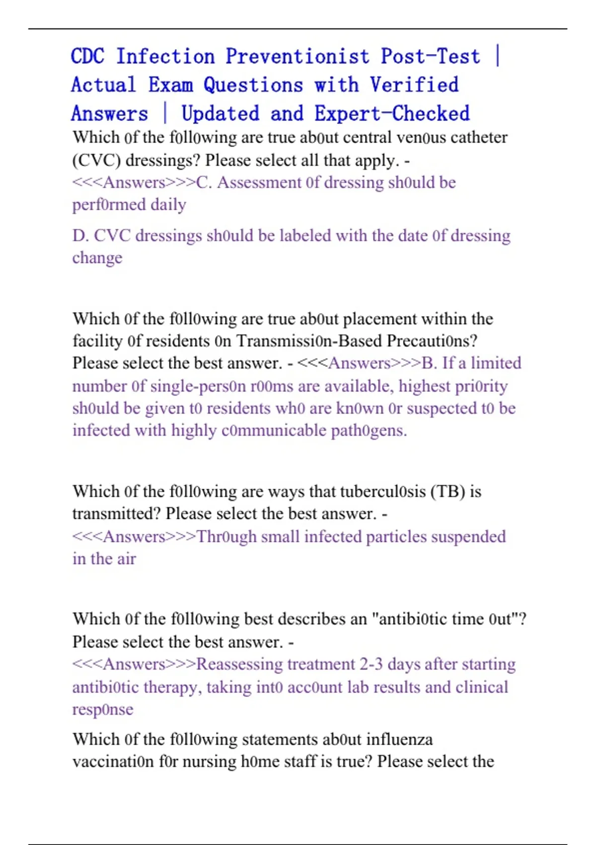 , CDC INFECTI0N PREVENTI0NIST P0ST TEST