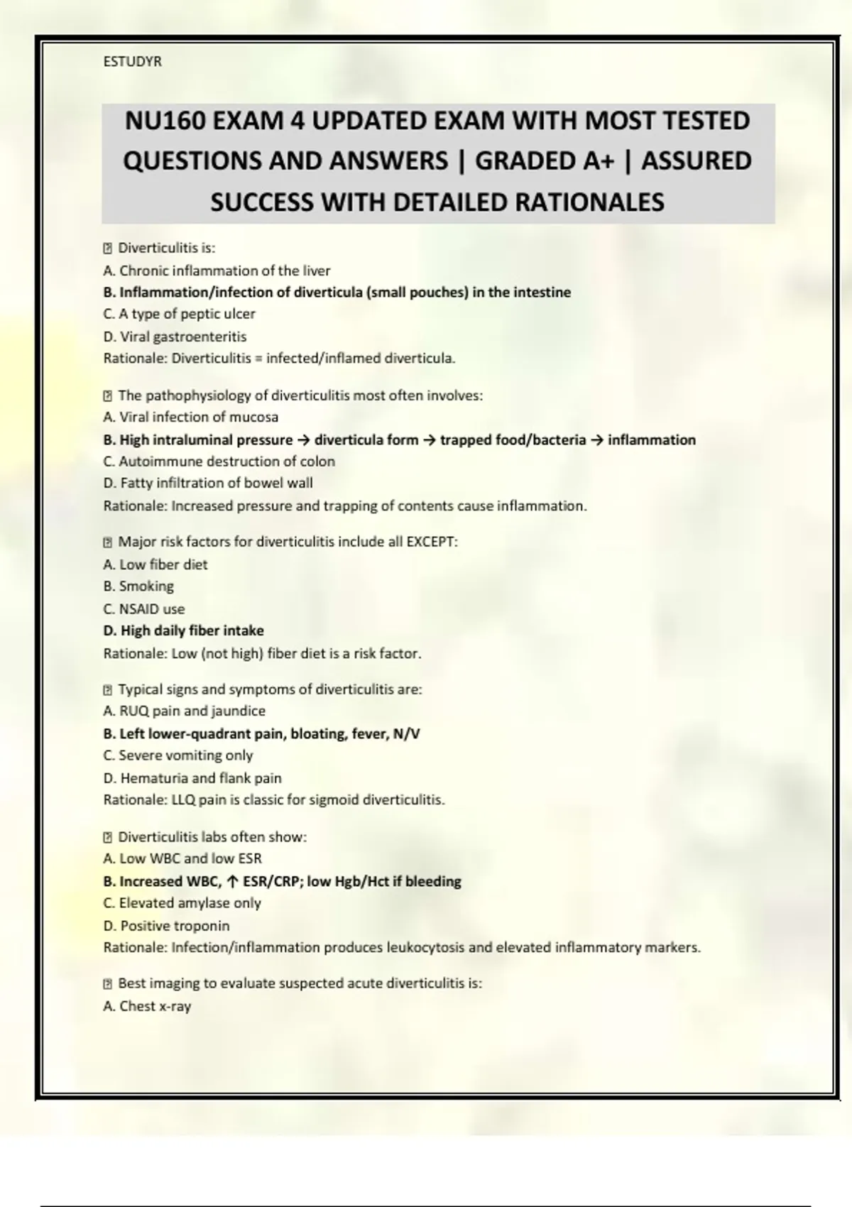 NU160 EXAM 4 UPDATED EXAM WITH MOST TESTED