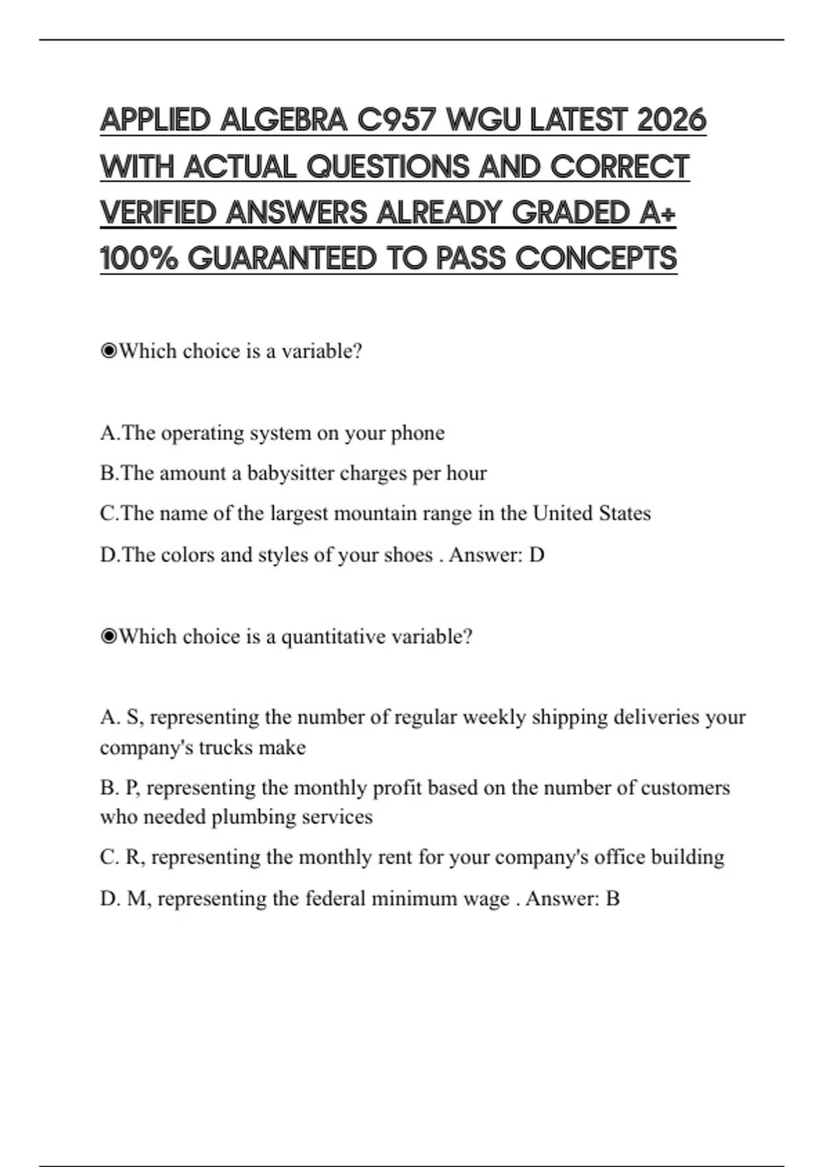 VERIFIED ANSWERS ALREADY GRADED A+