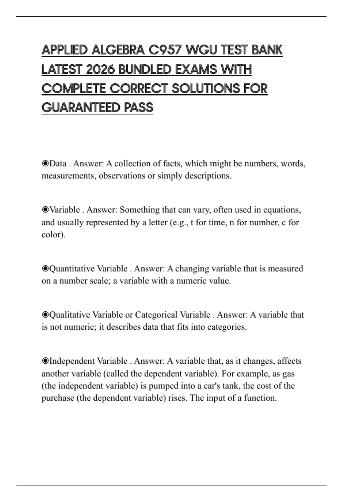 ◉Qualitative Variable or Categorical Variable . Answer: A variable that