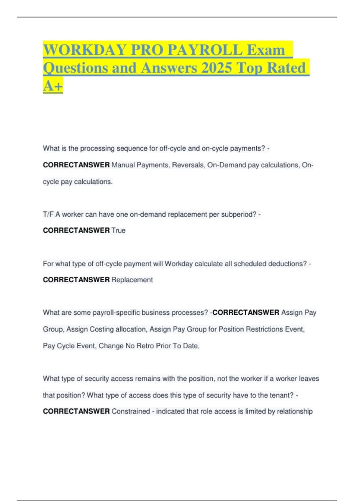 WORKDAY PRO PAYROLL Exam Questions and Answers 2025 Top Rated A+
