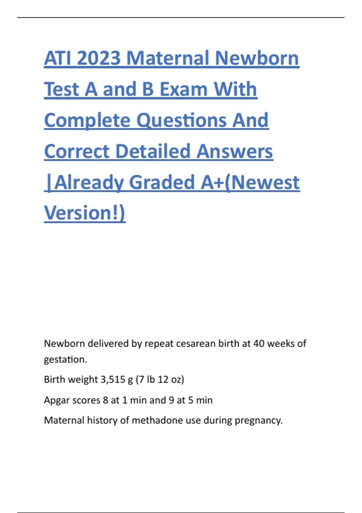 ATI 2023 Maternal Newborn Test A and B Exam With Complete Questions And Correct Detailed Answers |Already Graded A+(Newest Version!)