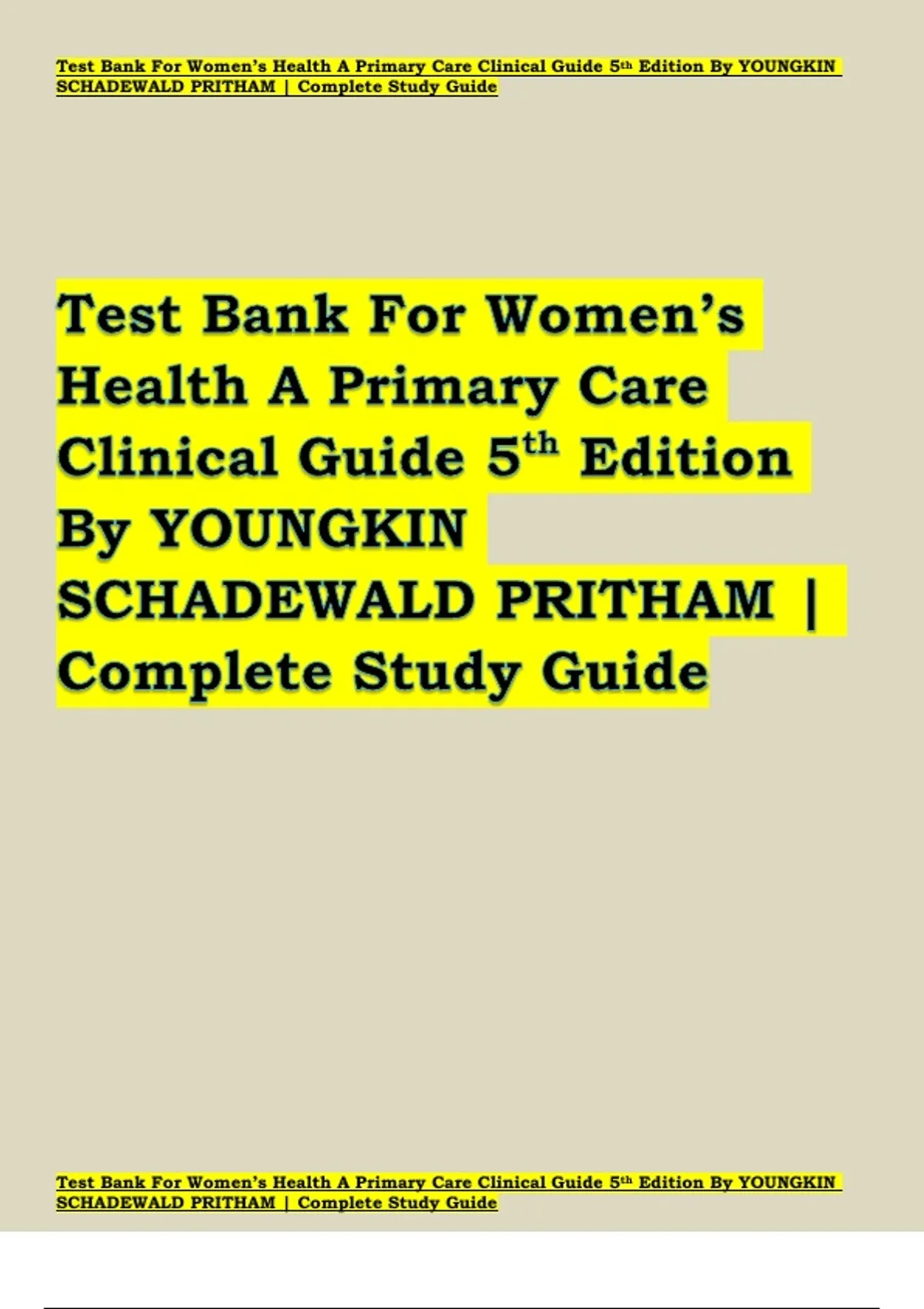 Test Bank For Women’s Health A Primary Care Clinical Guide 5th Edition By YOUNGKIN