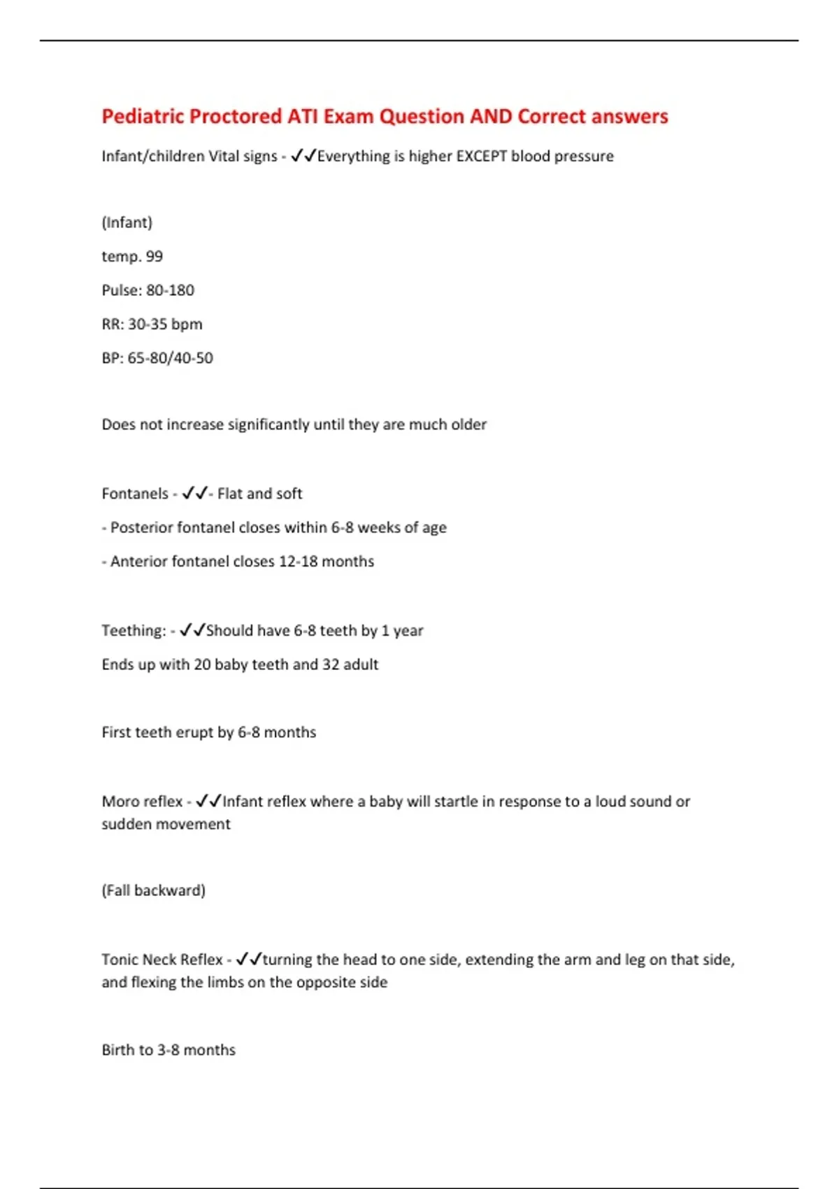 Pediatric Proctored ATI Exam Question AND Correct answers
