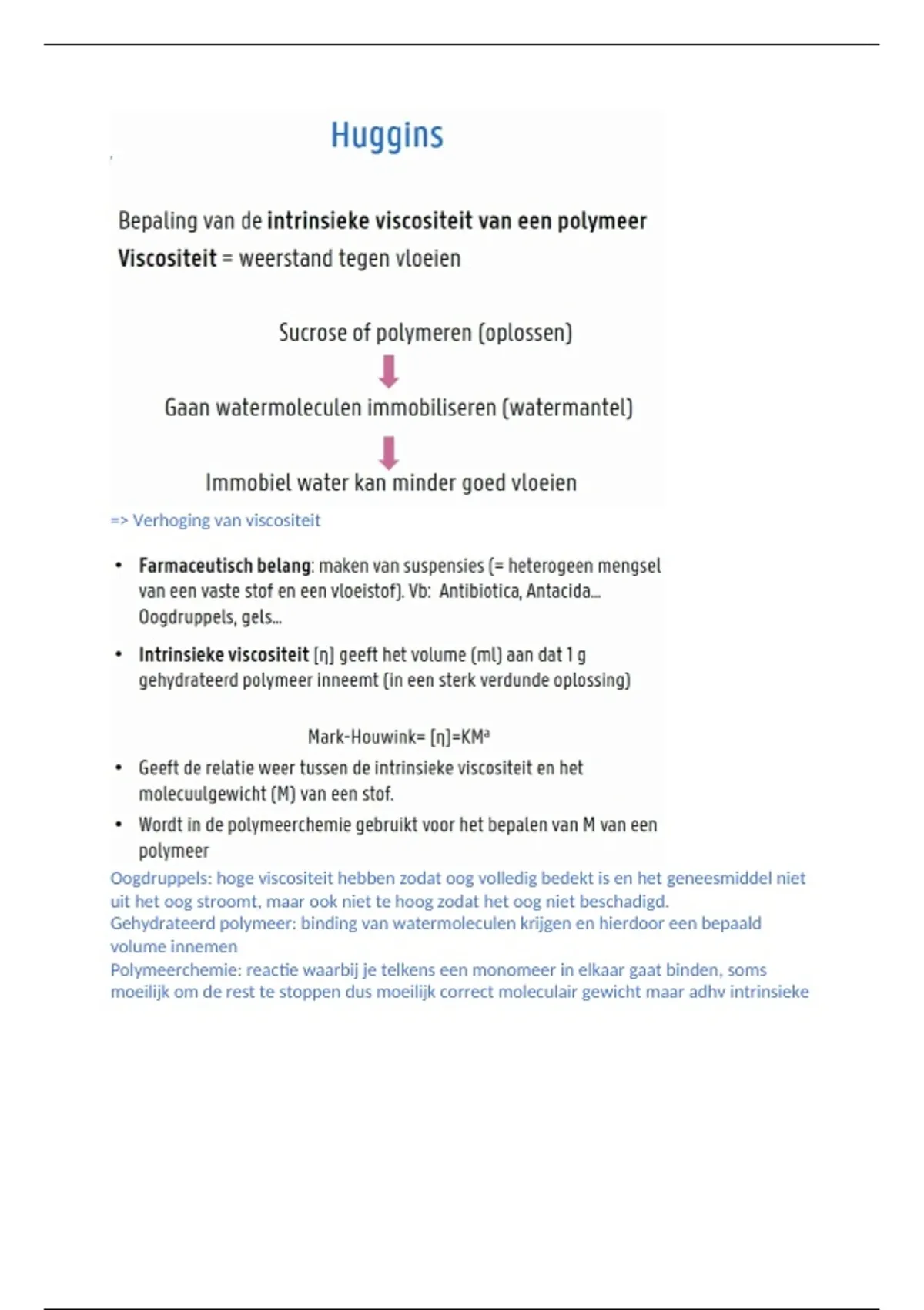 Samenvatting Huggings voorbereiding Practicum: fysicochemie, analyse en kwaliteit van geneesmiddelen