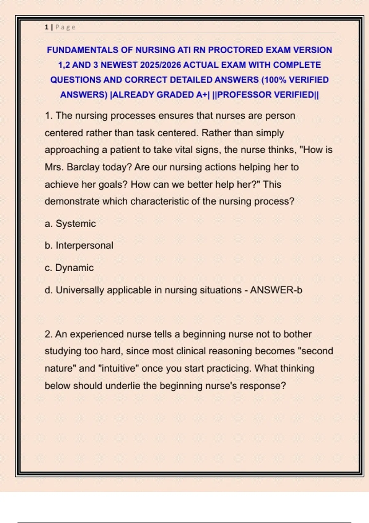 FUNDAMENTALS OF NURSING ATI RN PROCTORED EXAM VERSION