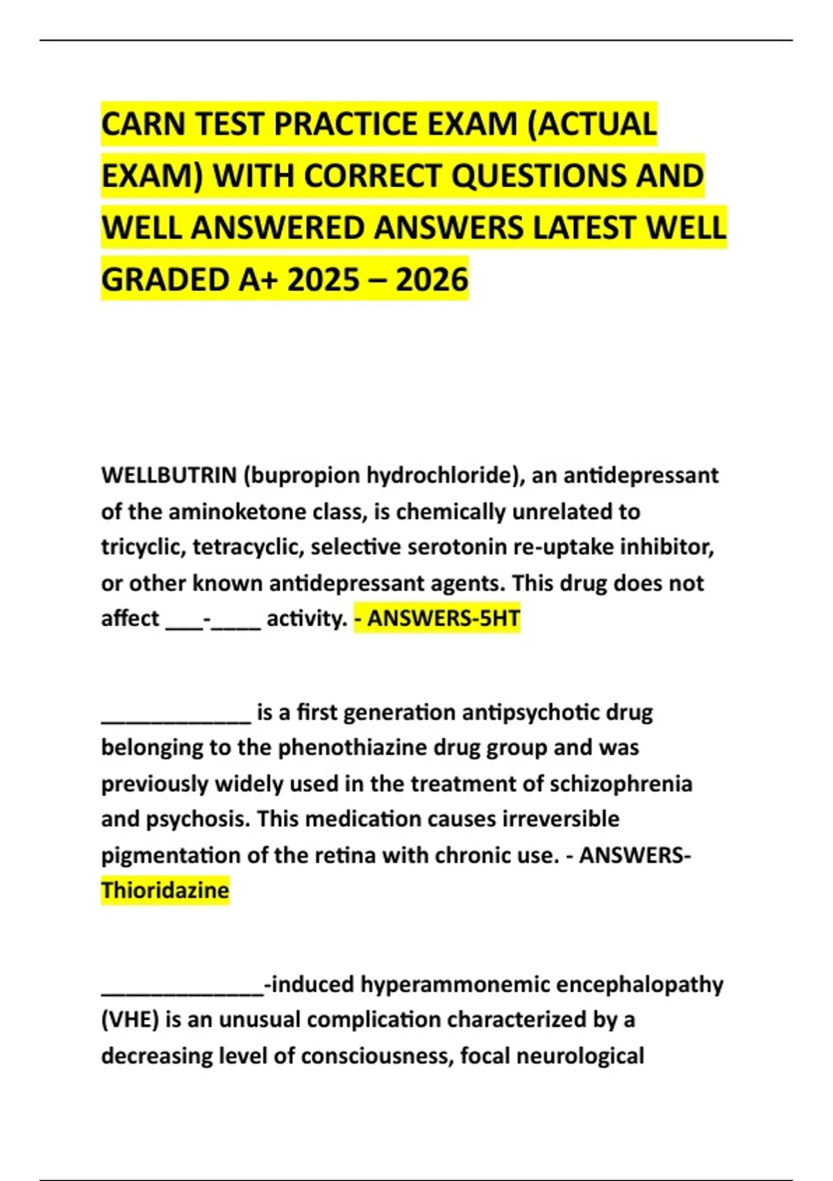 CARN TEST PRACTICE EXAM (ACTUAL EXAM) WITH CORRECT QUESTIONS AND WELL ANSWERED ANSWERS LATEST WELL GRADED A+ 2025 – 2026