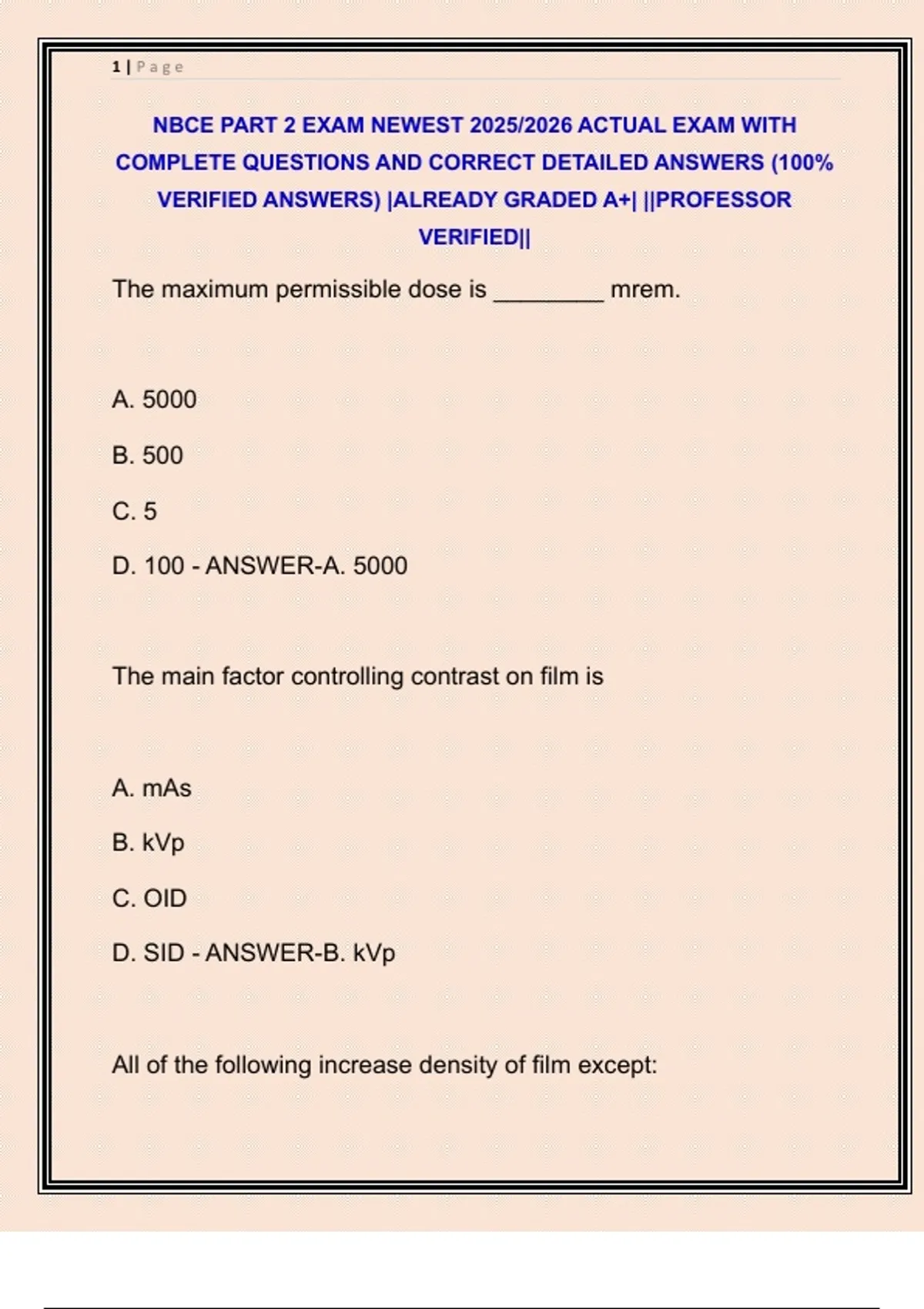 D. SID - ANSWER-B. kVp