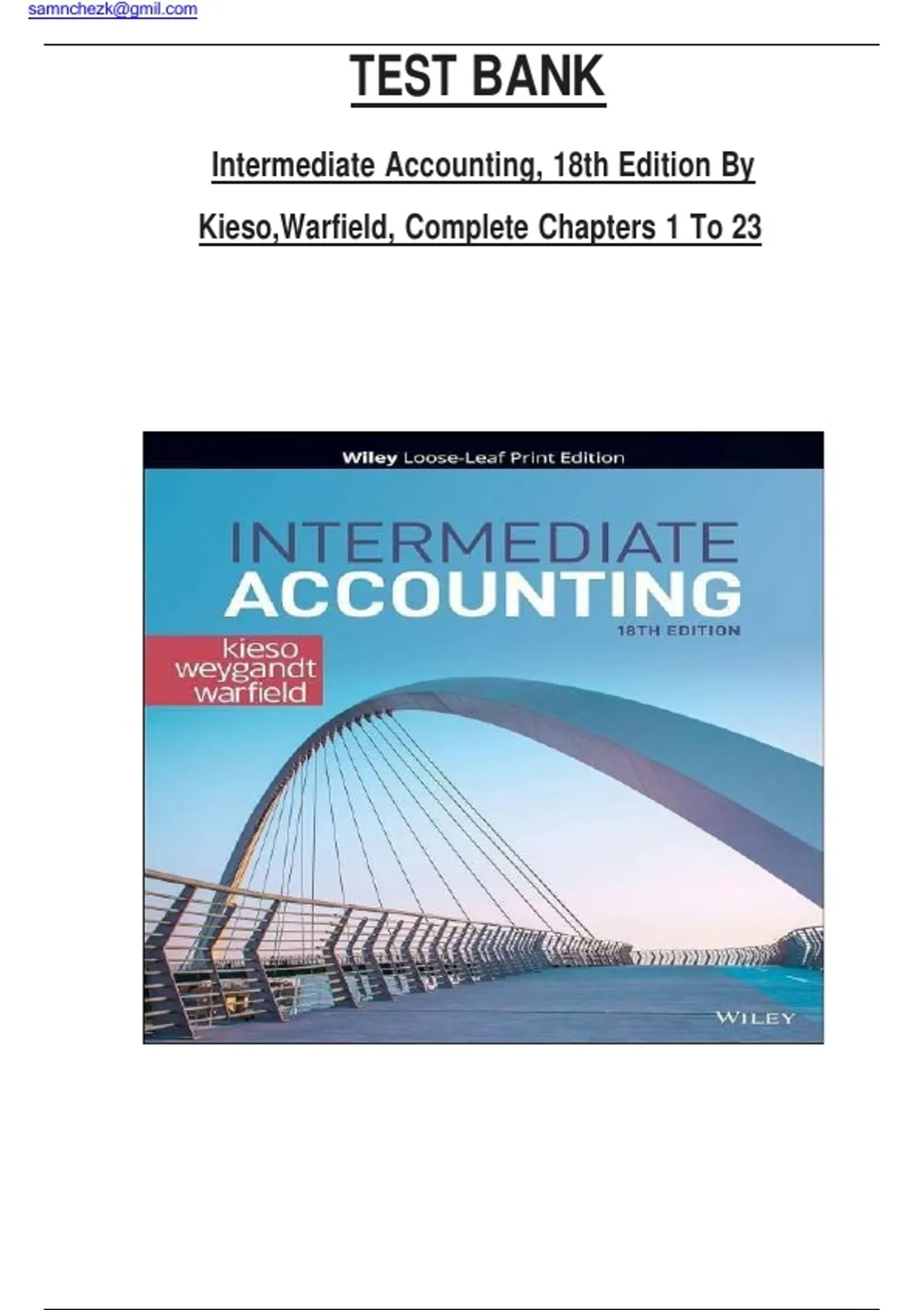 Test Bank for Intermediate Accounting, 18th Edition 18e by Donald E. Kieso,Terry D. Warfield