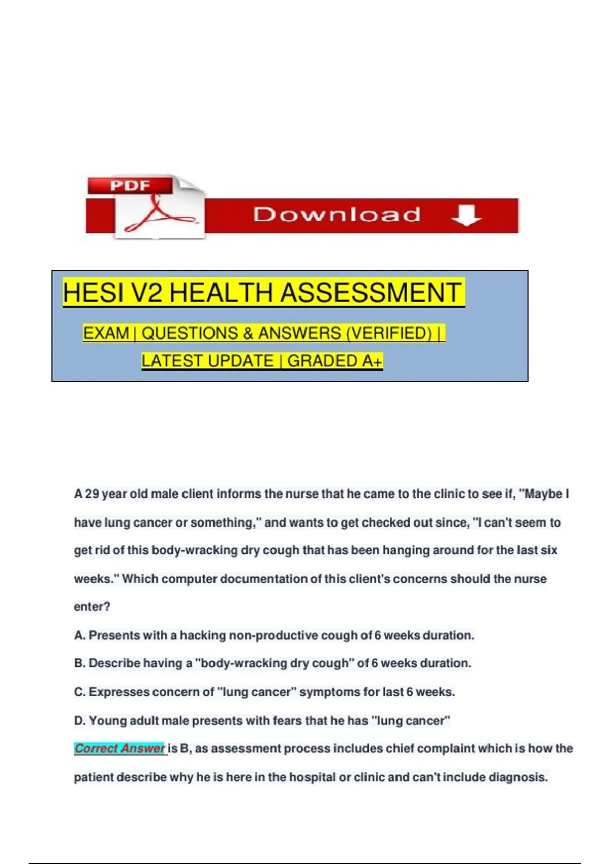 HESI V2 HEALTH ASSESSMENT EXAM | QUESTIONS & ANSWERS (VERIFIED) | LATEST UPDATE | GRADED A+