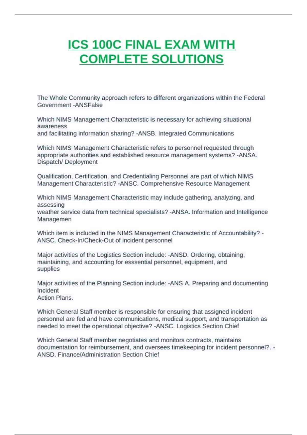 ICS 100C FINAL EXAM WITH COMPLETE SOLUTIONS