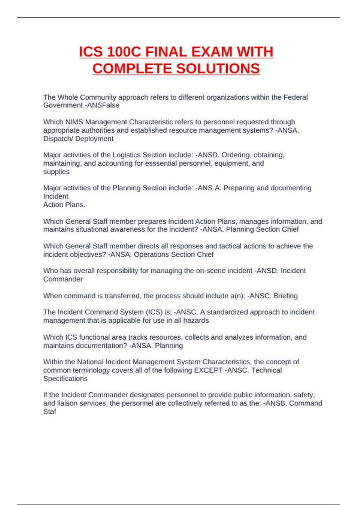 ICS 100C FINAL EXAM WITH COMPLETE SOLUTIONS