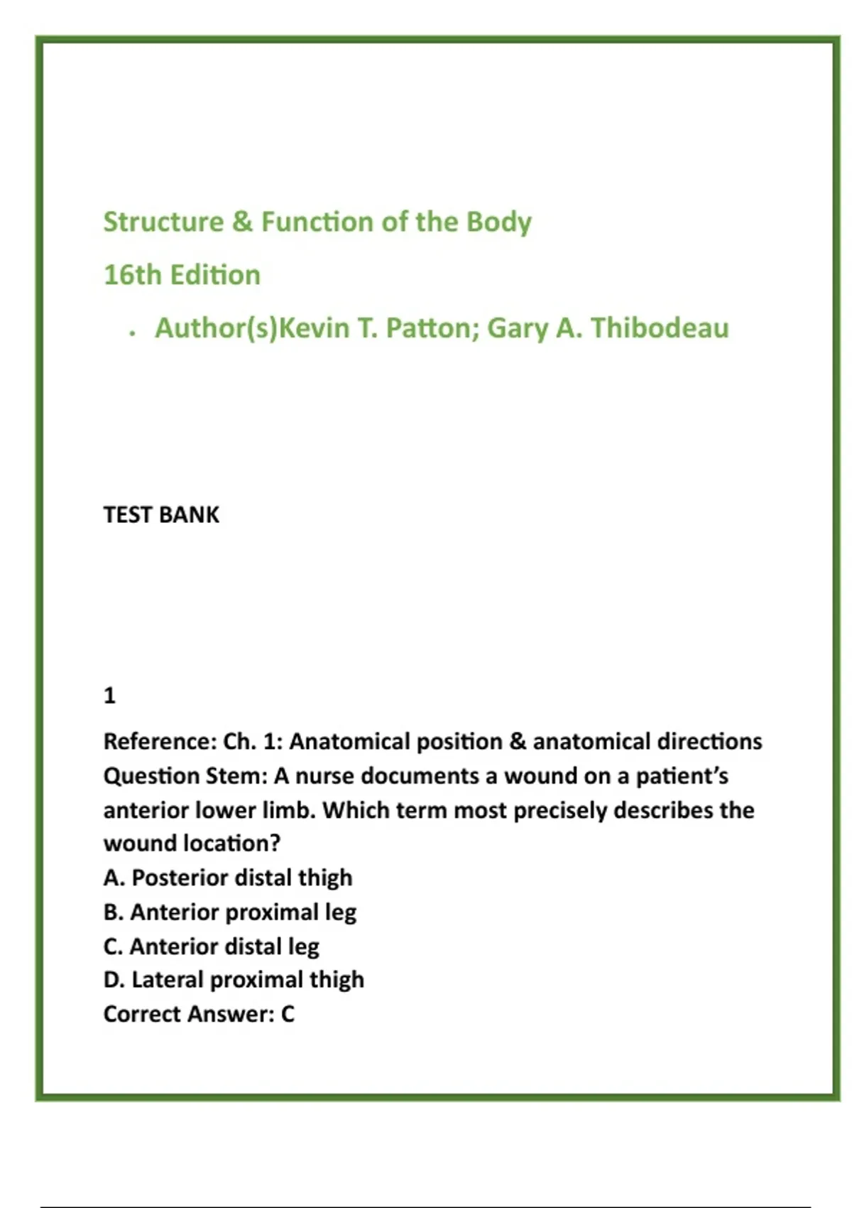 ,Rationale (correct): "Anterior" refers to the front of the body