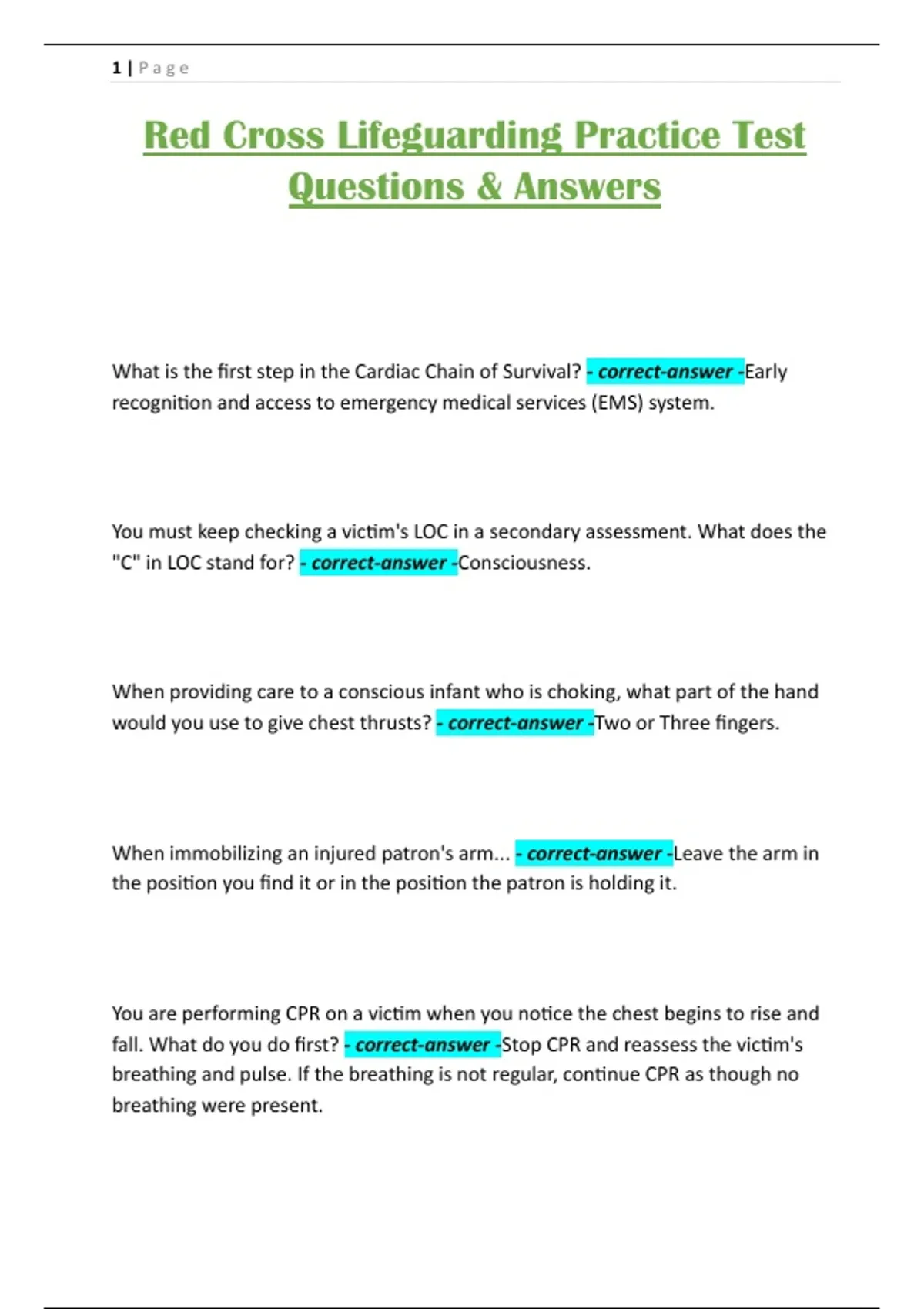 Red Cross Lifeguarding Practice Test Questions & Answers