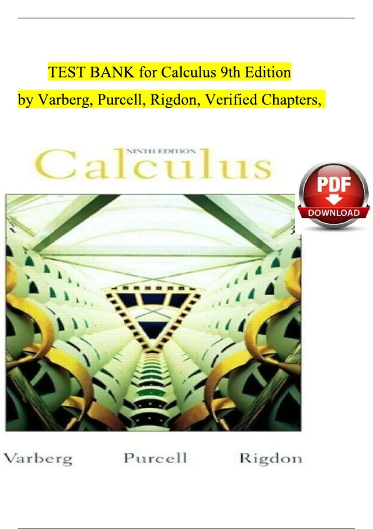 Test Bank for Calculus, 9th Edition by Varberg, Purcell, and Rigdon – Verified Chapters