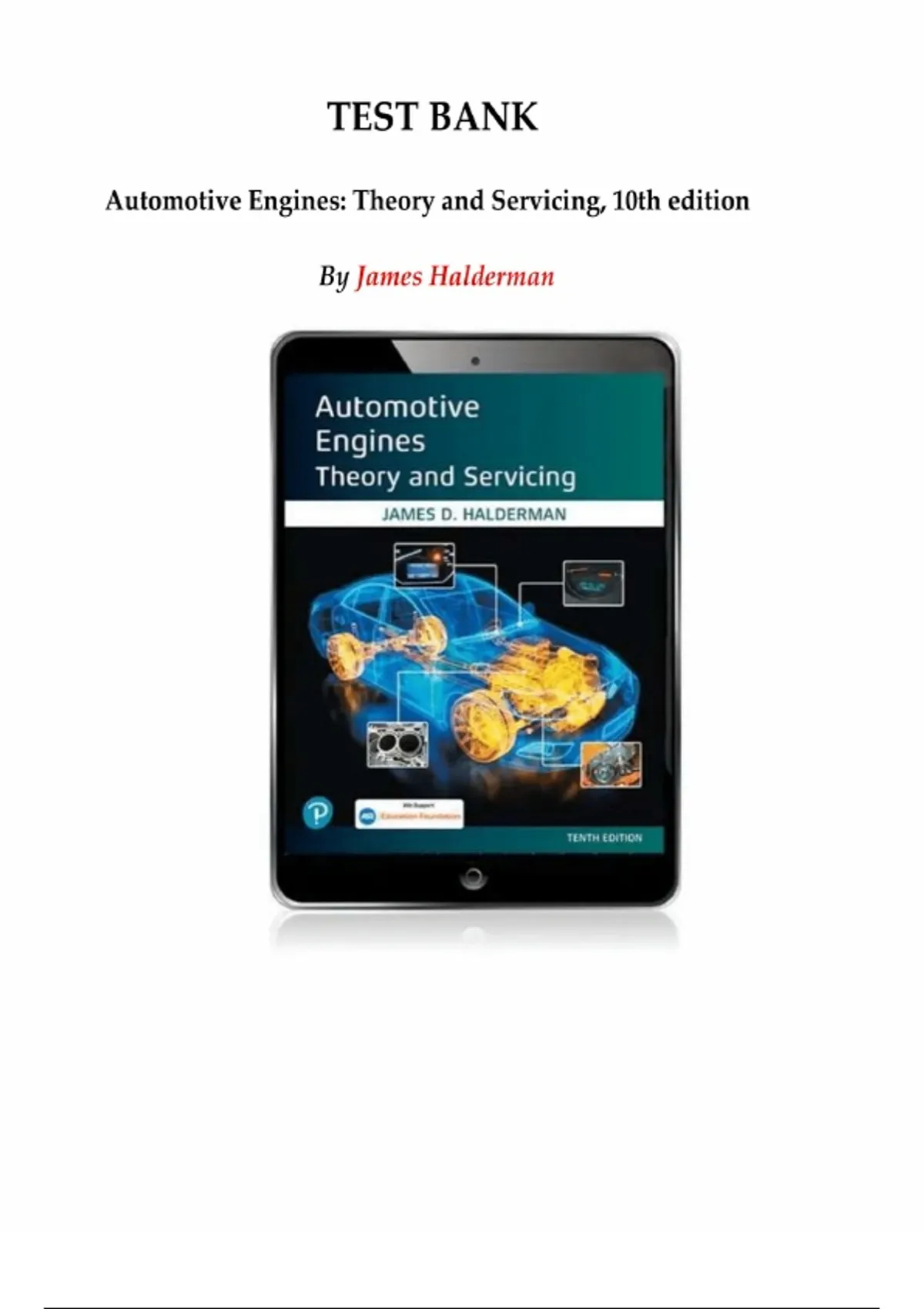 Automotive Engines: Theory and Servicing – 10th Edition by James D. Halderman | Complete Test Bank for Chapters 1–35