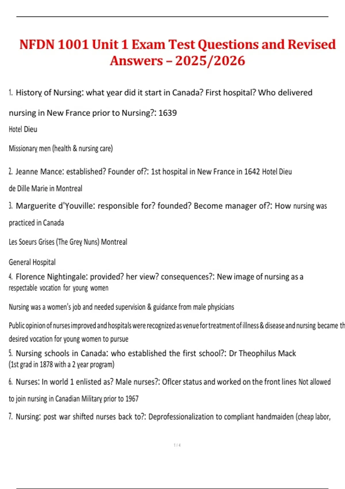 1. Historỵ of Nursing: what ỵear did it start in Canada? First hospital? Who delivered