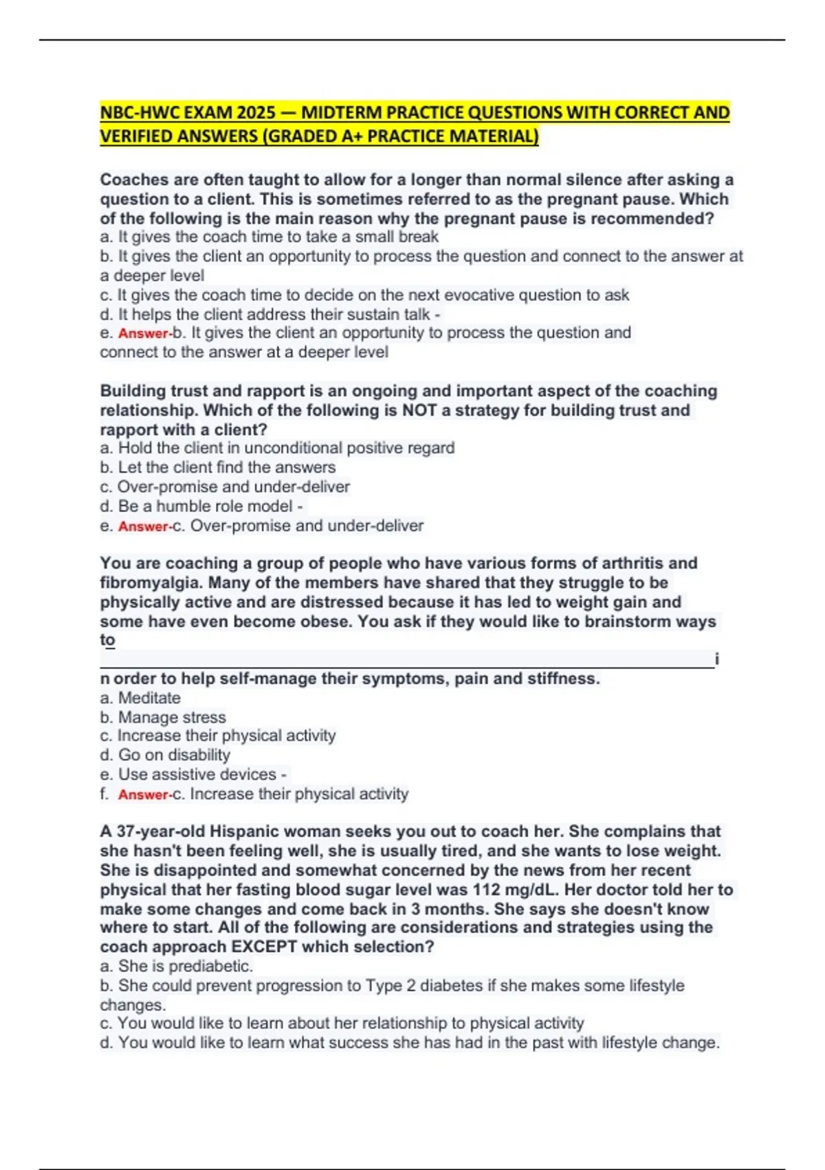 VERIFIED ANSWERS (GRADED A+ PRACTICE MATERIAL)