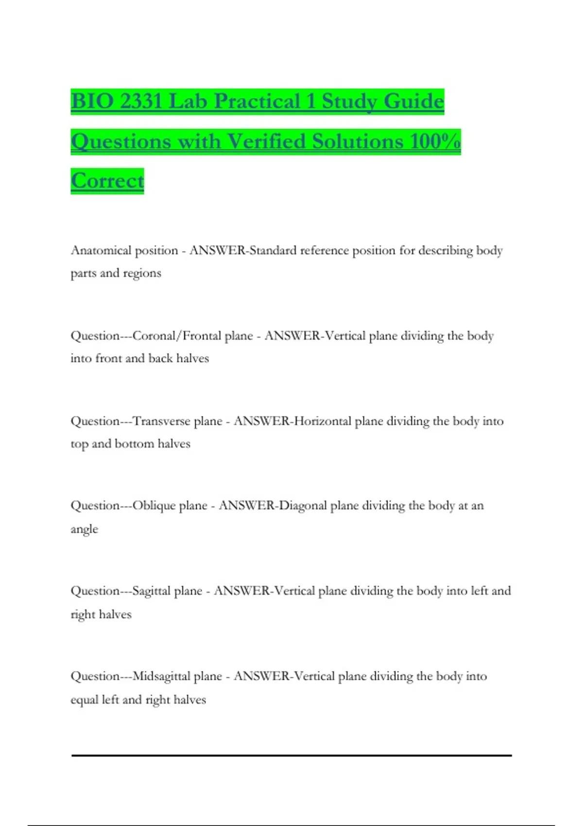 BIO 2331 Lab Practical 1 Study Guide Questions with Verified Solutions 100% Correct