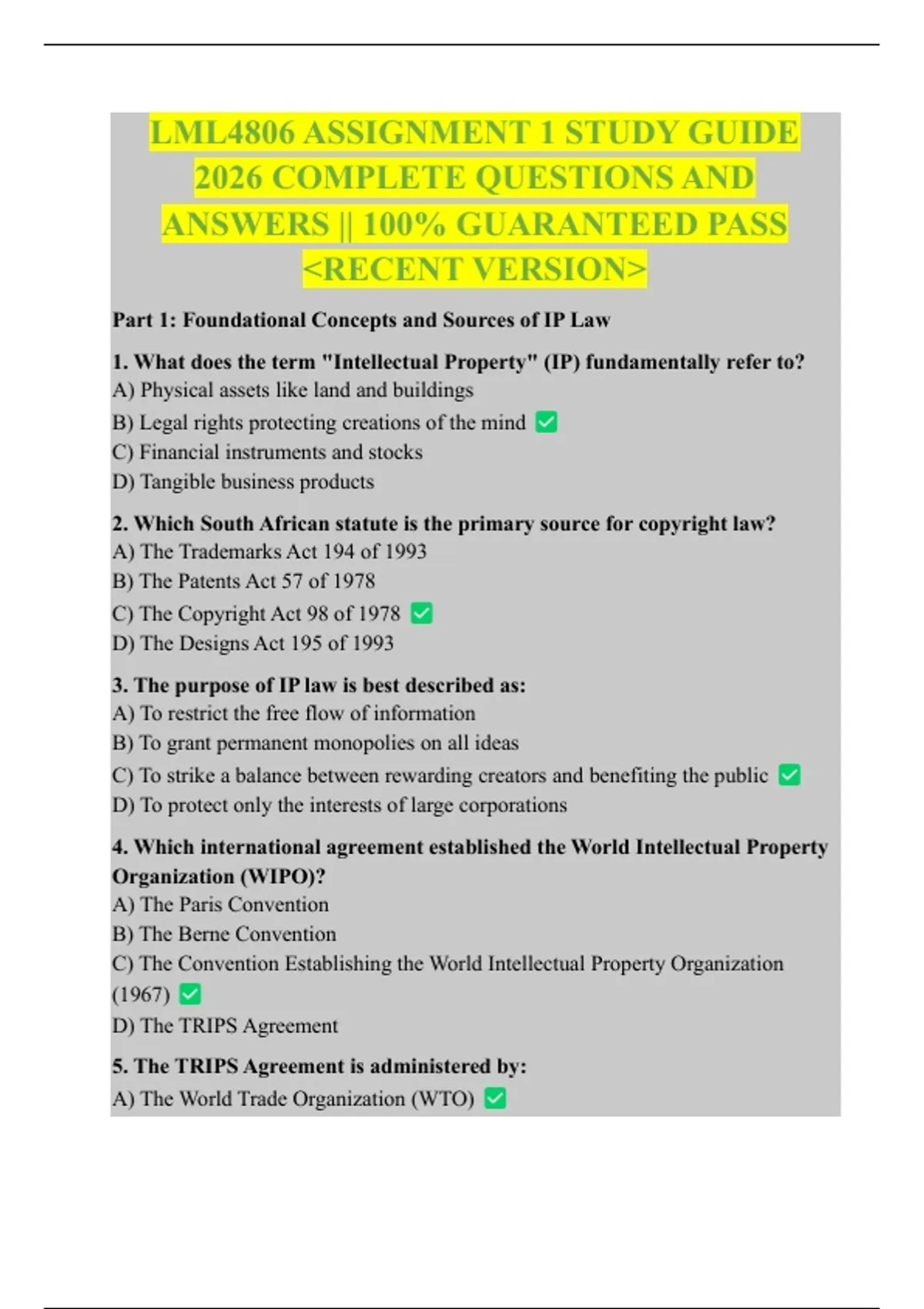 LML4806 ASSIGNMENT 1 STUDY GUIDE 2026 COMPLETE QUESTIONS AND ANSWERS || 100% GUARANTEED PASS &lt;RECENT VERSION&gt;
