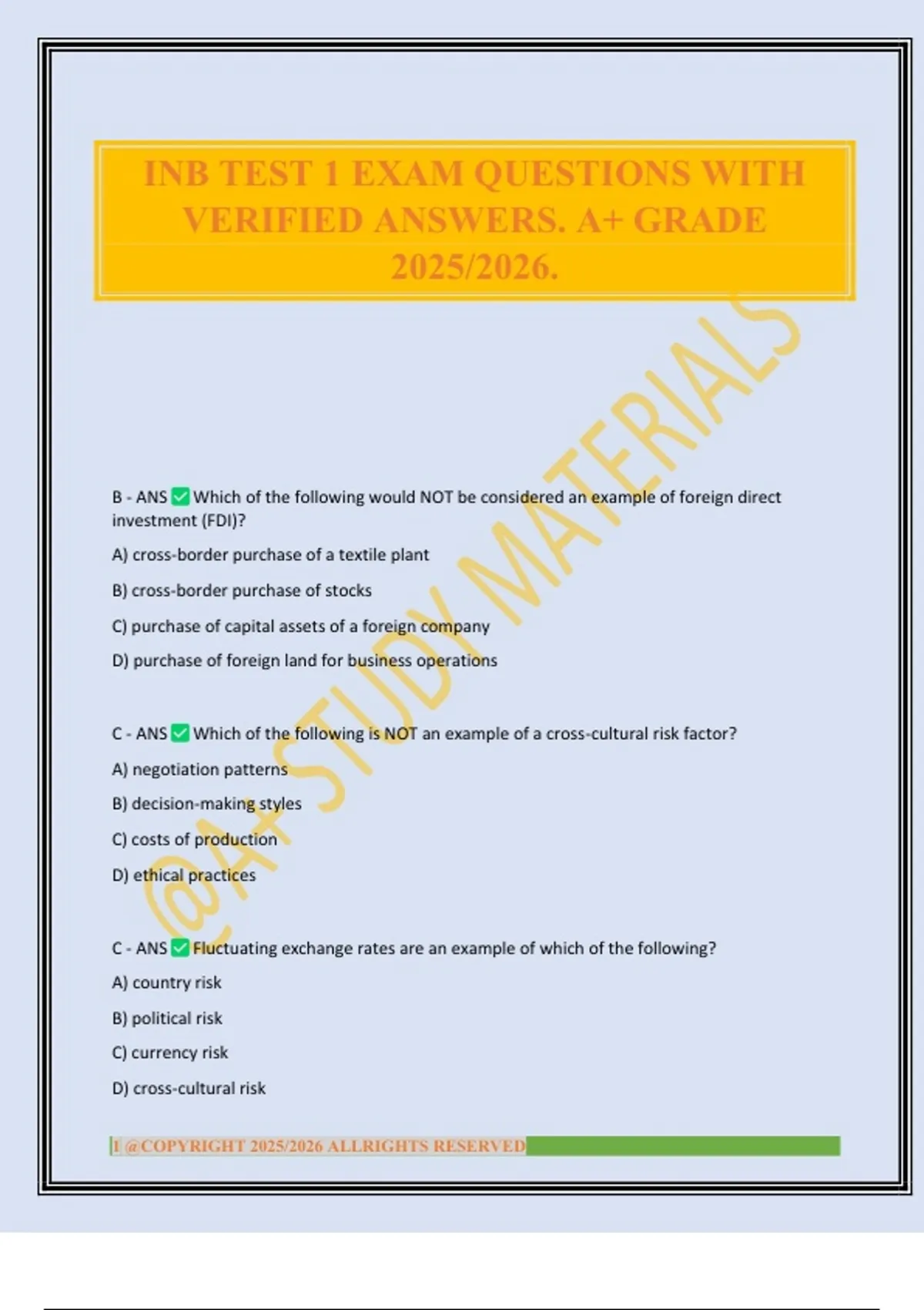 INB TEST 1 EXAM QUESTIONS WITH VERIFIED ANSWERS. A+ GRADE 2025/2026.