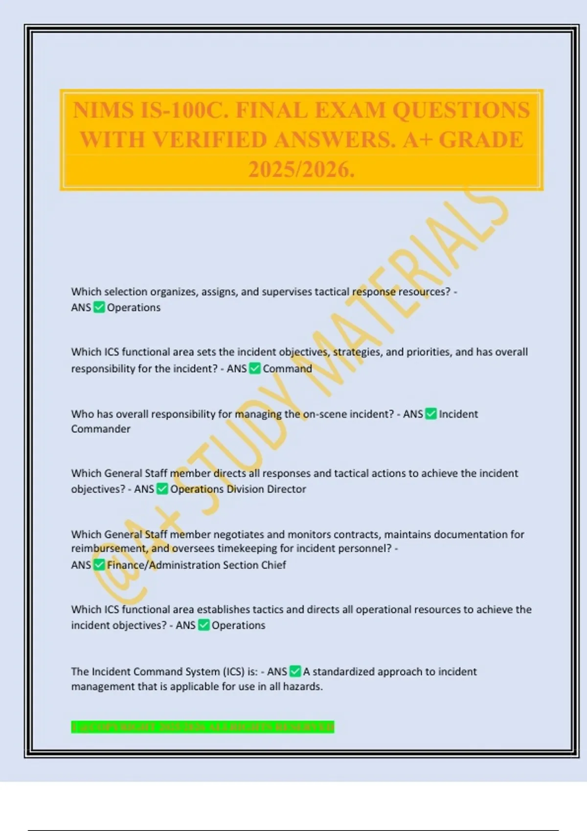 NIMS IS-100C. FINAL EXAM QUESTIONS