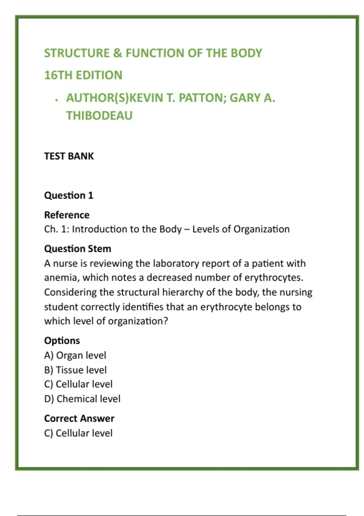 Patton & Thibodeau, 2024, Ch. 1: Introduction to the Body