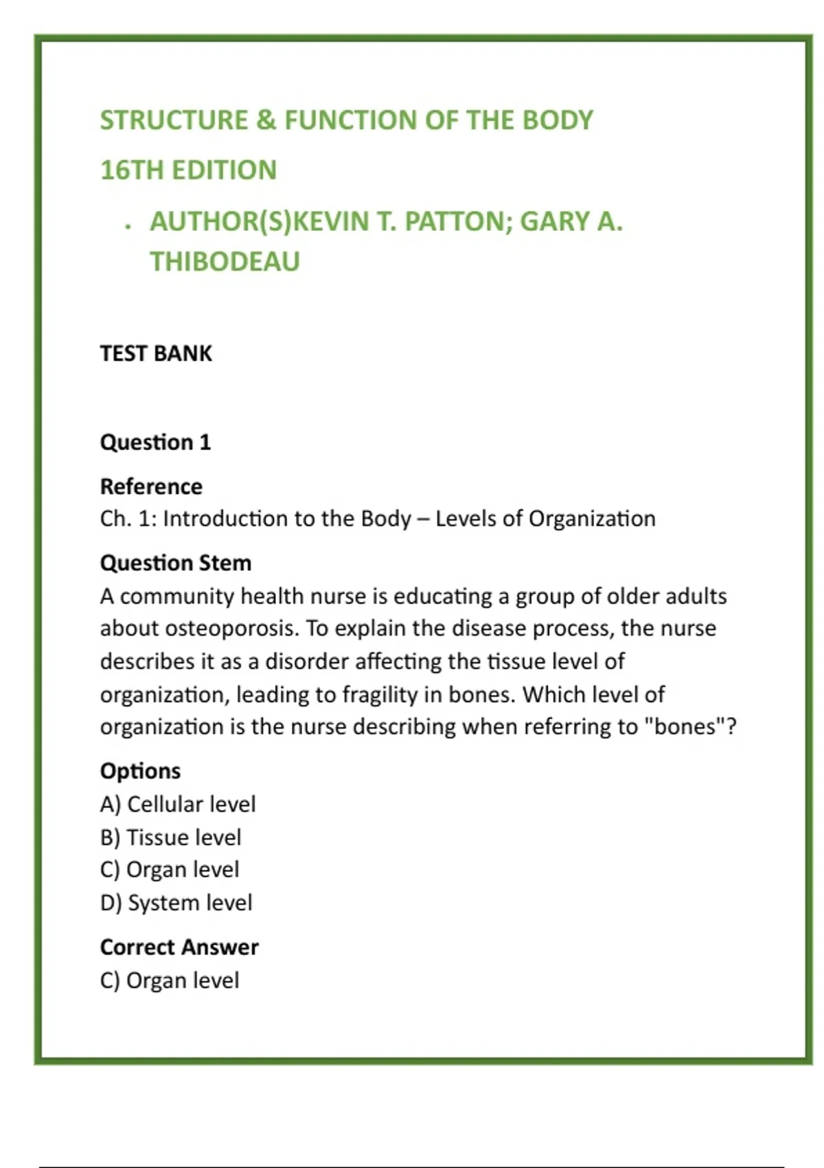 • Correct Answer C: An organ is a structure composed of
