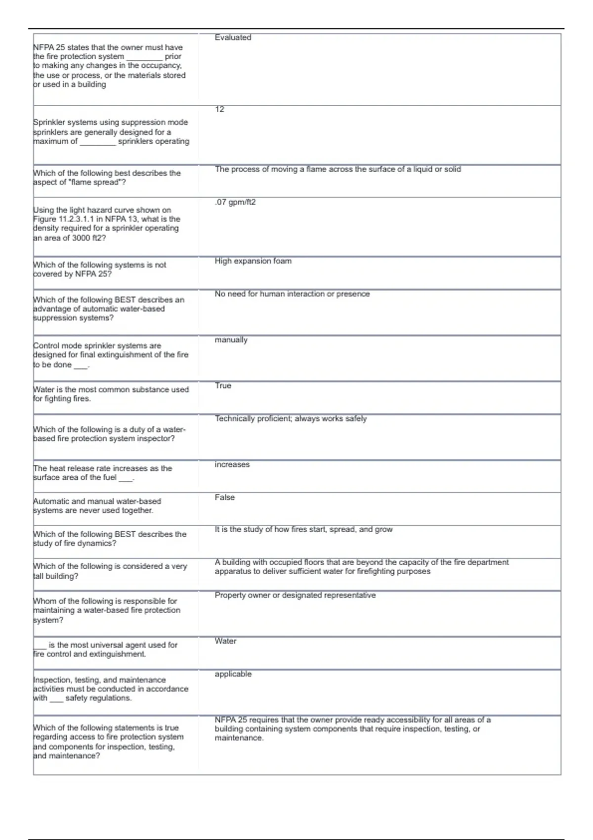 Which of the following statements BEST Not To certify that water-based systems will function and perform in a fire
