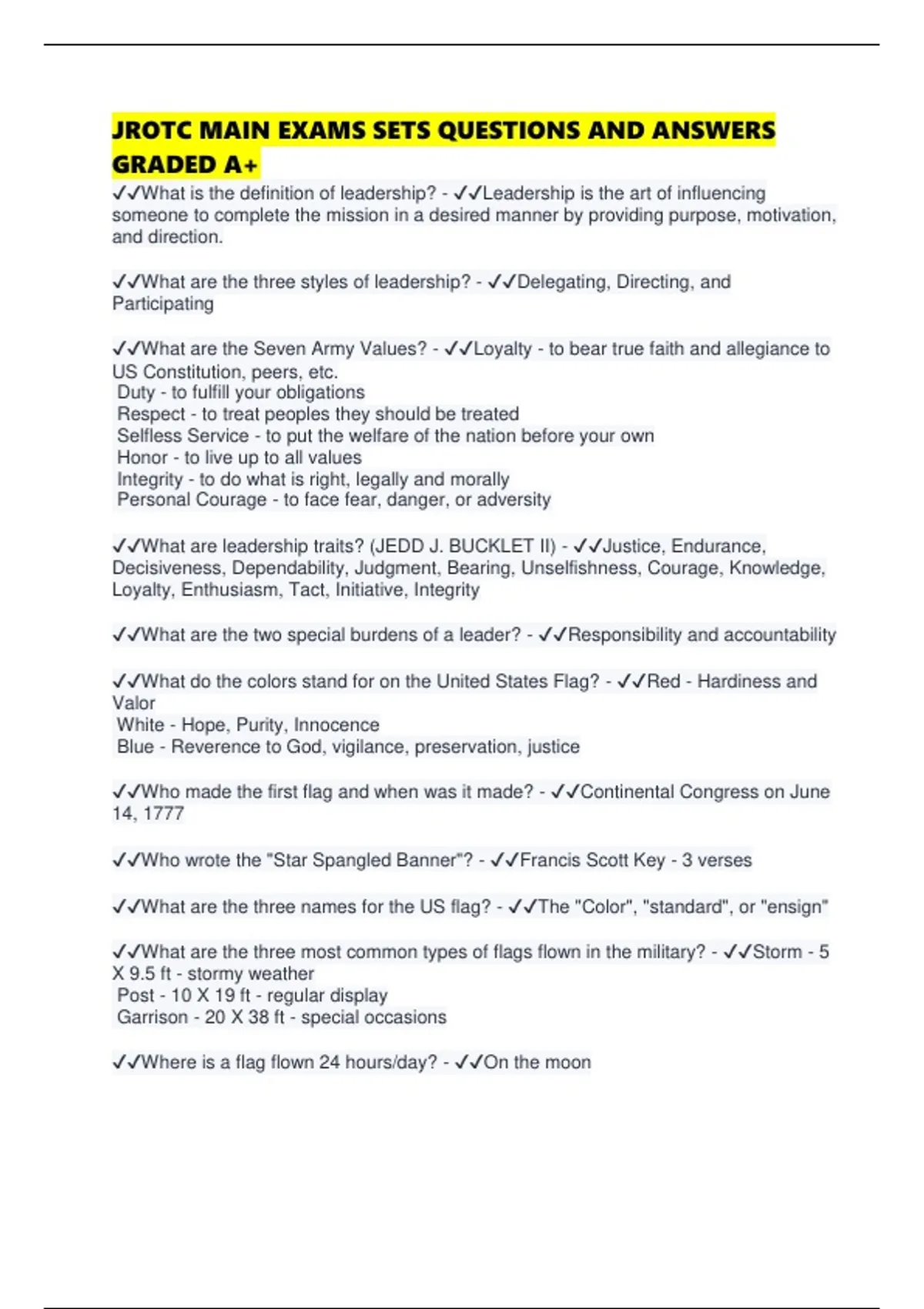 JROTC MAIN EXAMS SETS QUESTIONS AND ANSWERS GRADED A+