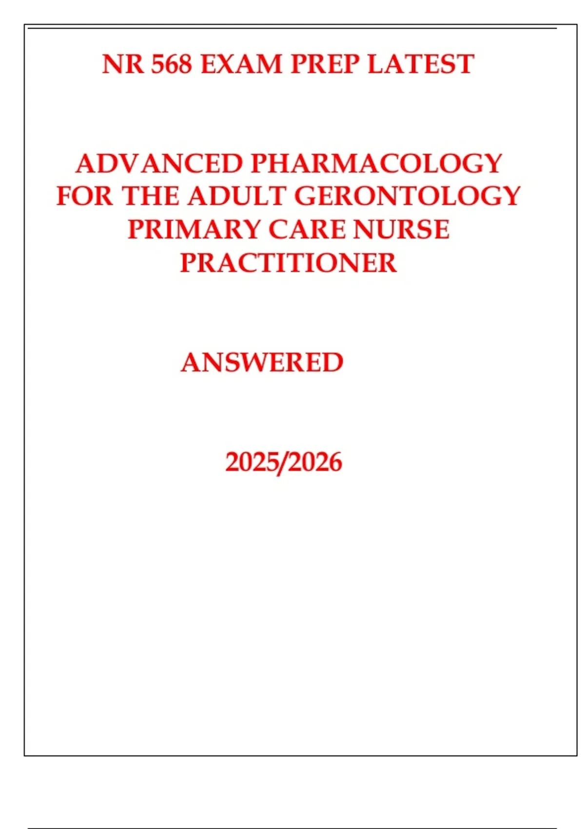NR 568 EXAM PREP LATEST ADVANCED PHARMACOLOGY FOR THE ADULT GERONTOLOGY PRIMARY CARE NURSE PRACTITIONER ANSWERED 2025/2026