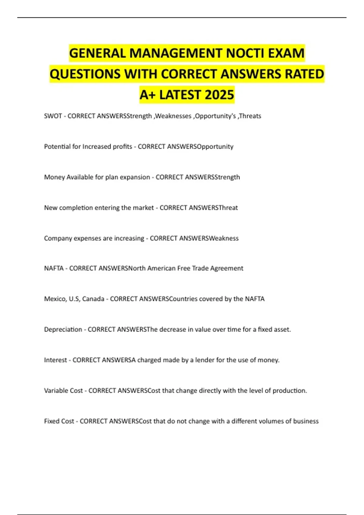 SWOT - CORRECT ANSWERSStrength ,Weaknesses ,Opportunity's ,Threats