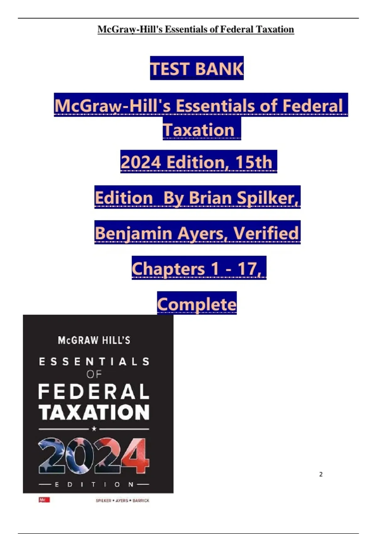 Essentials of Federal Taxation, 15th Edition – Spilker | Complete Test Bank Chapters 1–17 (2023 Edition, 2025–2026)