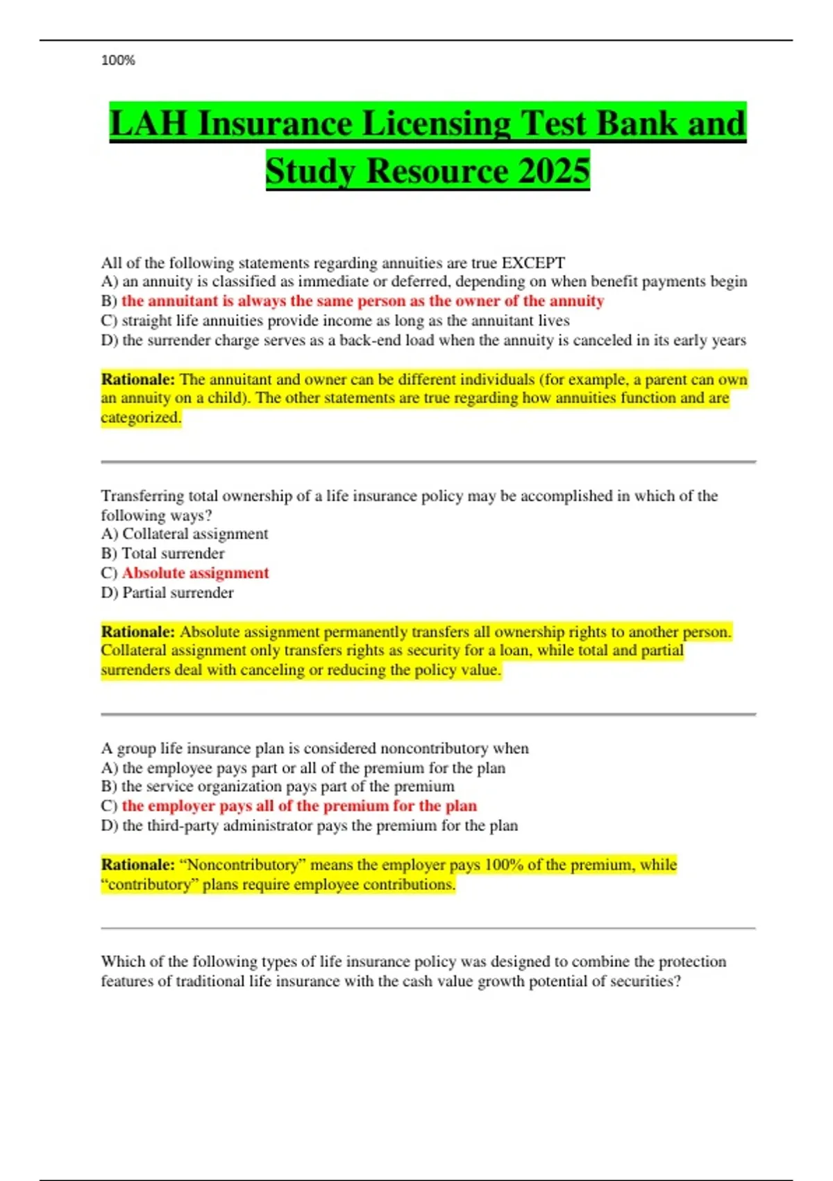 Rationale: “Noncontributory” means the employer pays 100% of the premium, while