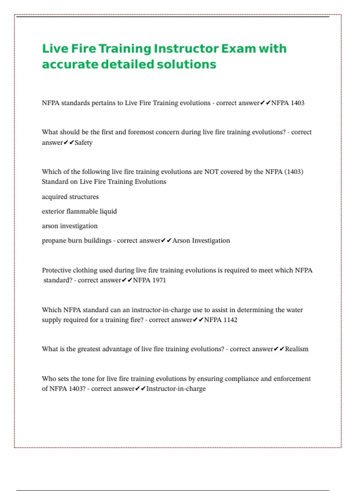 Live Fire Training Instructor Exam with accurate detailed solutions