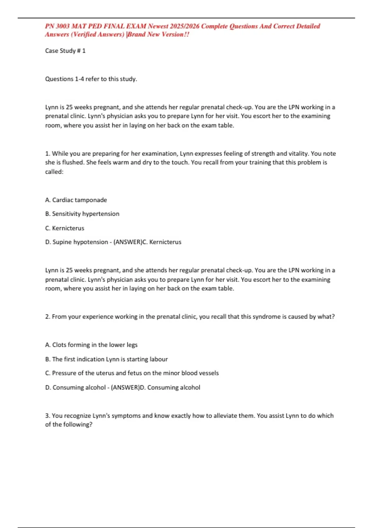 PN 3003 MAT PED FINAL EXAM Newest 2025/2026 Complete Questions And Correct Detailed Answers (Verified Answers) |Brand New Version!!
