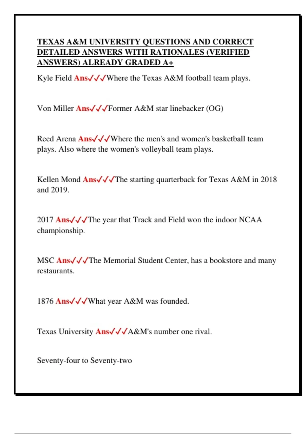 TEXAS A&M UNIVERSITY QUESTIONS AND CORRECT