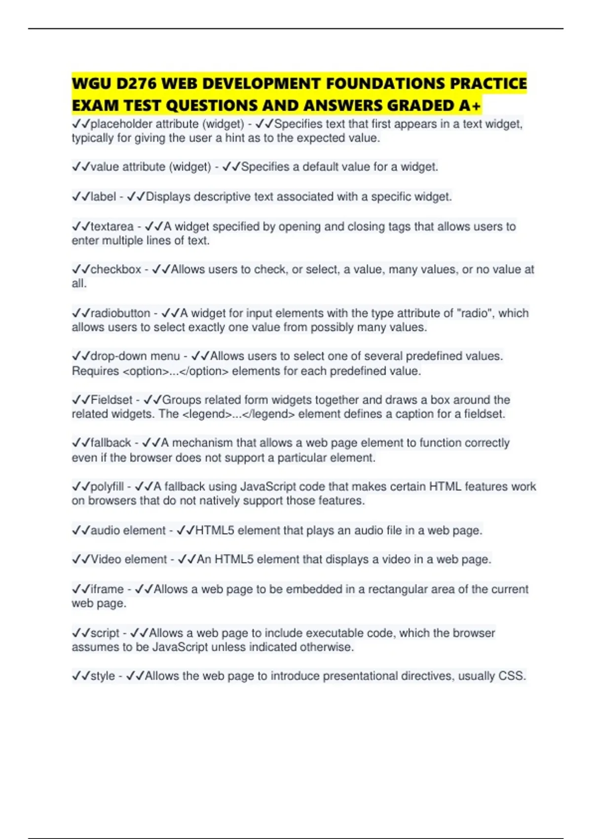 WGU D276 WEB DEVELOPMENT FOUNDATIONS PRACTICE EXAM TEST QUESTIONS AND ANSWERS GRADED A+