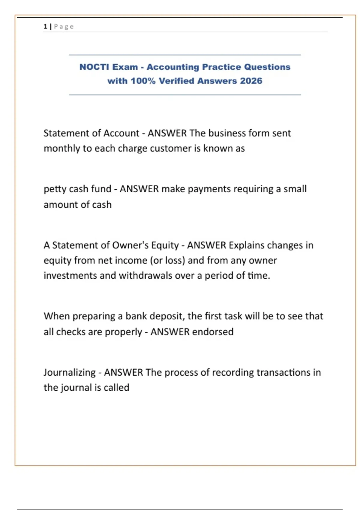 NOCTI Exam - Accounting Practice Questions