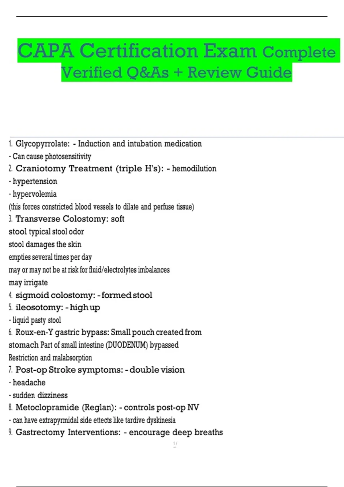 CAPA Certification Exam – Complete Study Guide with Practice Questions and Correct Answers for Perianesthesia Nursing.